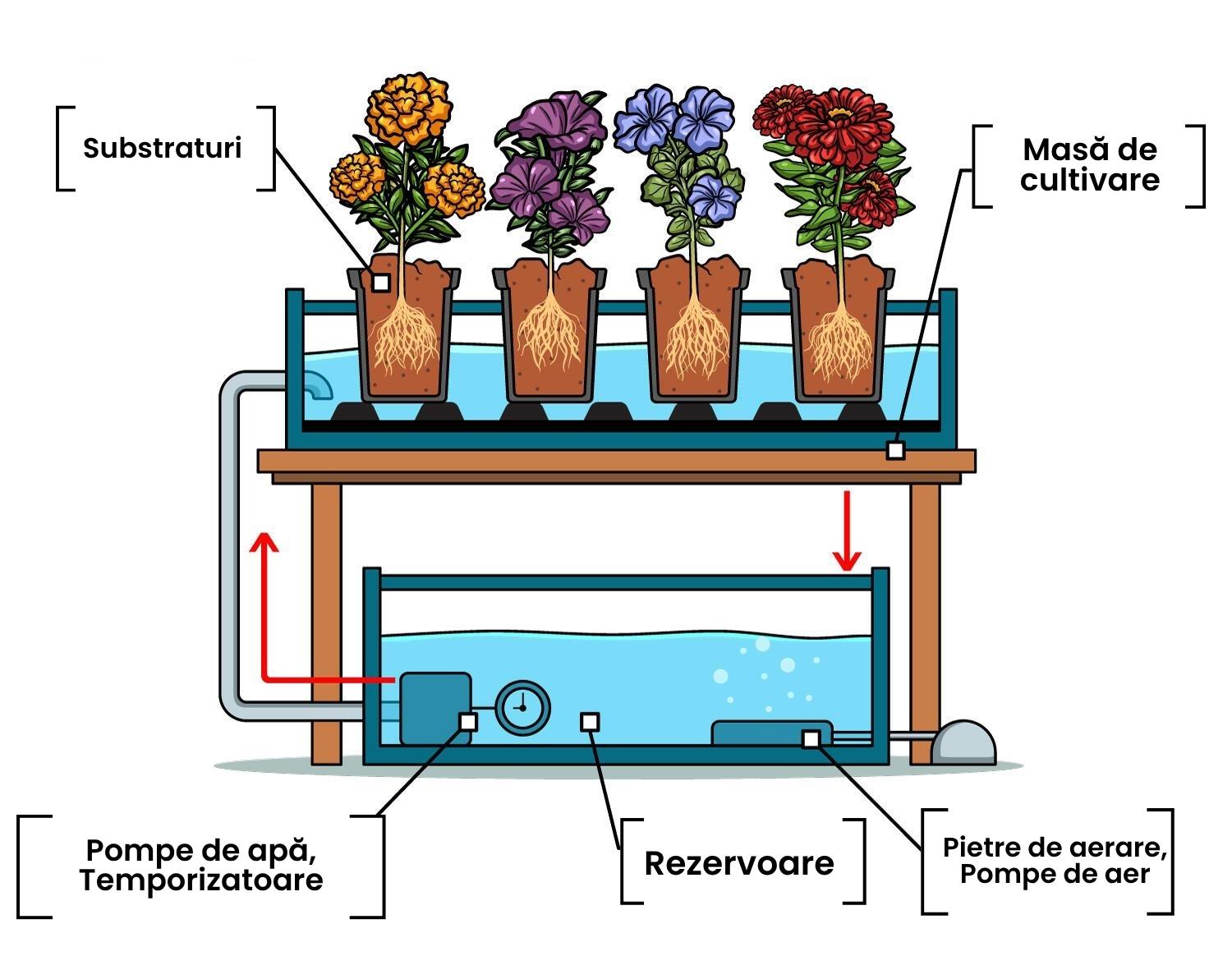 Pentru un sistem complet funcțional, recomandăm achiziționarea de echipamente adiționale, cum ar fi substraturi, Nutrienți și alte accesorii hidroponice din oferta noastră.