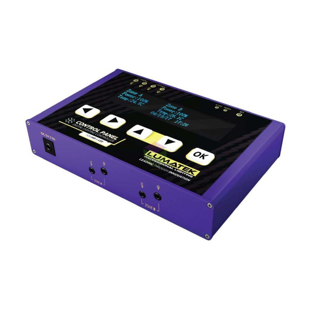 Panoul de control Lumatek este un controler digital de iluminat care oferă control absolut asupra balasturilor Lumatek HID și LED-urilor. Folosind o tehnologie extrem de inovatoare, acesta controlează în mod inteligent temperatura camerei, temporizarea luminii, automatizarea, controlul siguranței și dimming-ul.