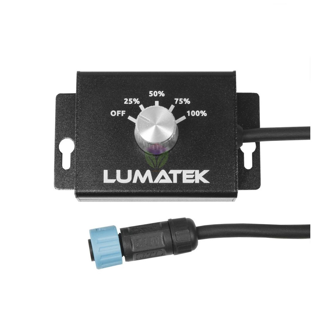 Regulator de intensitate lumină pentru iluminat LED Lumatek. Acesta permite reducerea intensității luminoase cu 25%.