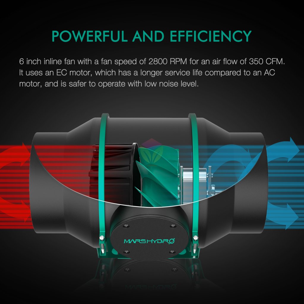 Ventilátor Mars Hydro zajišťuje efektivní cirkulaci vzduchu, zatímco uhlíkový filtr zabraňuje úniku zápachů, čímž vytváří zdravé prostředí pro vaše rostliny.
