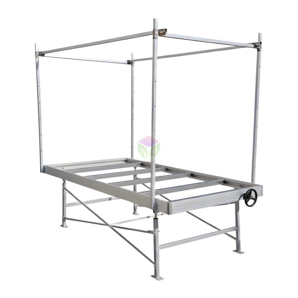 Construcția metalică a mesei de cultivare mobile fără tavă de cultivare și alte accesorii. Furnizat în stare demontată.