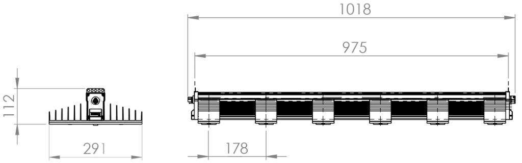 - Lungime: 1018mm, lățime: 291 mm, înălțime: 116 mm