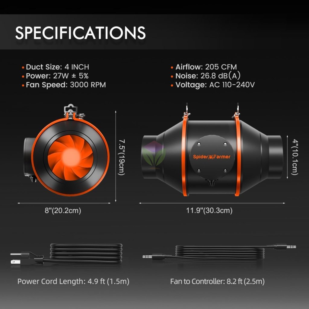 1 × Ventilator pentru conductele de ventilație de 4”, 1 × Filtru de carbon de 4”, 1 × Furtun flexibil de aluminiu pentru aer, 3 × Cleme pentru furtun: Ventilația adecvată este esențială pentru a crea un mediu sănătos, fără exces de căldură și umiditate. Filtrul de carbon ajută la eliminarea mirosurilor, iar ventilatorul asigură o schimbare optimă a aerului.