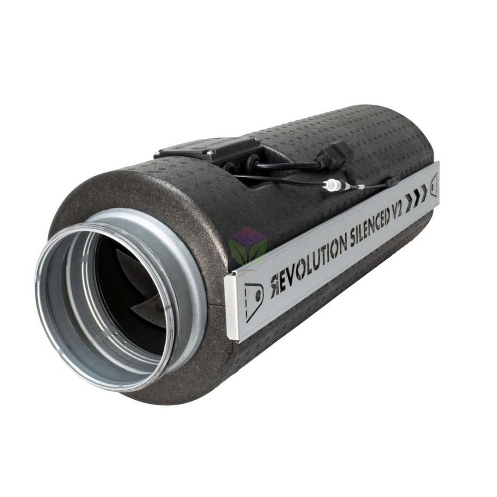 Revolution Silenced V2 este un ventilator perfect pentru absorbția zgomotului, cu motoare EC silențioase și palete dublu echilibrate. Paletele puternice și optimizate aerodinamic, împreună cu paletele ghidaj, creează fluxuri de aer rapide și de înaltă presiune care pot fi zgomotoase. Carcasa ventilatorului Revolution Silenced V2 include o spumă care reduce zgomotul, nu absoarbe umiditatea sau praful și a fost special dezvoltată pentru sistemele de ventilație.